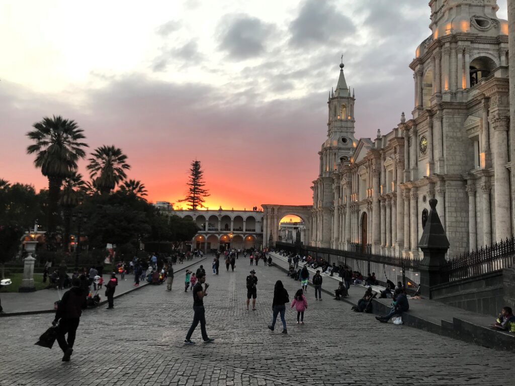 Vol depuis votre pays d’origine et arrivée à Lima (160 m). Connexion vers Arequipa (2 340 m), connue sous le nom de « Ville Blanche » pour ses demeures en pierre volcanique (sillar). Transfert de l’aéroport et hôtel. Dénivelé : +2 180 m. Distance depuis Lima : 1 024 km (Panamericana Sur). Temps de vol : 1 hr.