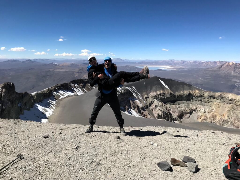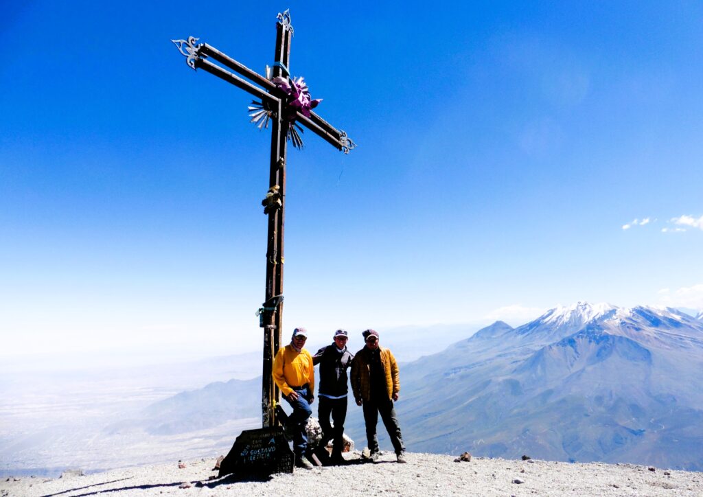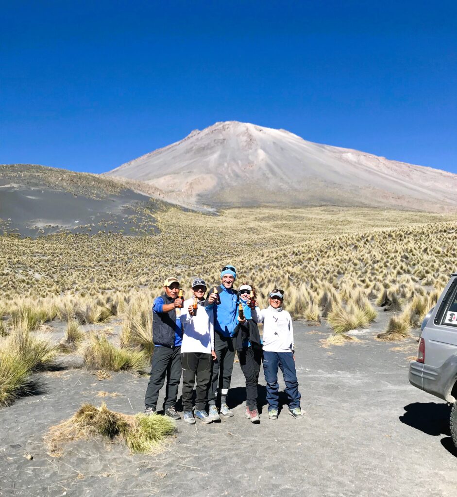 Notre premier parcours de montagne (trekking) commence au village de Madrigal, où nous franchirons le col de Bomboya (5 000 m). Ensuite, nous descendrons vers le village de Tapay pour passer la nuit dans une maison rurale. Le lendemain, nous continuerons vers Malata puis descendrons jusqu’au lit de la rivière Colca pour passer la nuit dans l’Oasis de Sangalle, où nous pourrons profiter d’un après-midi agréable et relaxant après plusieurs jours de marche. De ce village, nous monterons vers Cabanaconde, où un taxi nous emmènera à nouveau vers Chivay. L’après-midi, nous retournerons à Arequipa. Après cette randonnée, nous nous sentirons très forts et tenterons l’ascension de notre premier volcan de plus de 6 000 m : le Volcan Chachani (6 075 m). Après cette tentative, nous viserons le plus haut volcan du Pérou, le Coropuna (6 425 m), considéré comme la troisième montagne la plus haute des Andes péruviennes, avant de conclure par l’impressionnant Volcan Misti (5 825 m).