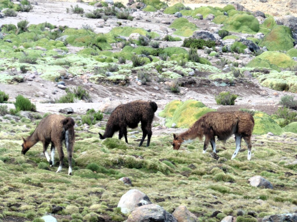 L’approche la plus recommandée se fait par la route nord. Comme il est d’usage dans cette région du Pérou, le trajet s’effectue en véhicules 4×4 depuis Arequipa, en suivant la voie vers Cabrerías (3 400 m d’altitude) et la zone humide d’Aguada Blanca (4 100 m d’altitude). Pendant ce voyage, nous aurons l’occasion d’observer divers camélidés sud-américains, tels que les vigognes, les guanacos et les lamas, au sein de la Réserve nationale de Salinas et Aguada Blanca.